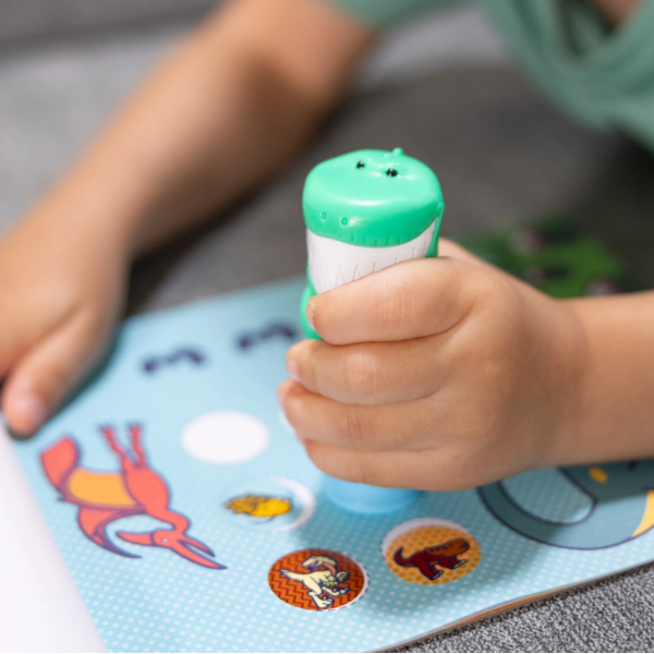 Melissa & Doug Sticker WOW!™ este un mod cu totul nou de a te juca cu autocolante – folosește personajul drăguț, de colecție, pentru a ștampila autocolante cu tematică preistorice pe blocul de activități Dinozaur de 24 de pagini și pe alte proiecte creative de artă. Include 300 de autocolante ușor de îndepărtat (100 de modele unice cu tematică preistorică) și bloc de activități de 24 de pagini. Activitățile distractive de ștampilare și învățare includ numere, numărare, potrivire, căutare și găsire și multe altele Caracteristici: Dimensiune: 10 x 15 x 4.6 cm Varsta: 3-7 ani