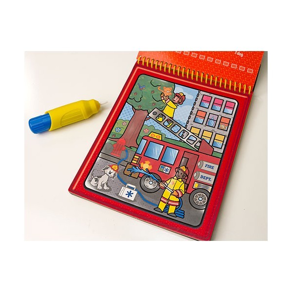 Carnet de colorat Apa Magica - Vehicule Acest carnet cu activitati include 4 pagini reutilizabile si stiloul-pensula pentru apa, cu sistem de reumplere. Umpleti stiloul cu apa si treceti varful peste paginile carnetului pentru a vedea cum imaginile ascunse apar ca prin minune! Fiecare pagina include o activitate de tip cauta si descopera cu vehicule. Dupa ce ati terminat, lasati doar sa se usuce pentru 10-15 minute, timp in care imaginile vor disparea si o puteti lua de la capat. Nu va speriati daca imaginile dispar - le puteti vedea din nou "colorandu-le" doar cu apa. Stiloul cu apa este dimensionat astfel incat sa fie usor de tinut in mana de catre cei mici si are un compartiment spcial pentru pastrare in coperta carnetului. Goliti stiloul inainte de a-l aseza in compartimentul pentru pastrare sau atunci cand nu il folositi. Acest set ajuta la recunoastrea culorilor, dezvoltarea miscarilor fine si a coordonarii ochi-mana, invatarea numerelor si a numararii. Dimensiuni: 25 x 16 x 4 cm. Este un set ideal pentru calatorie.
