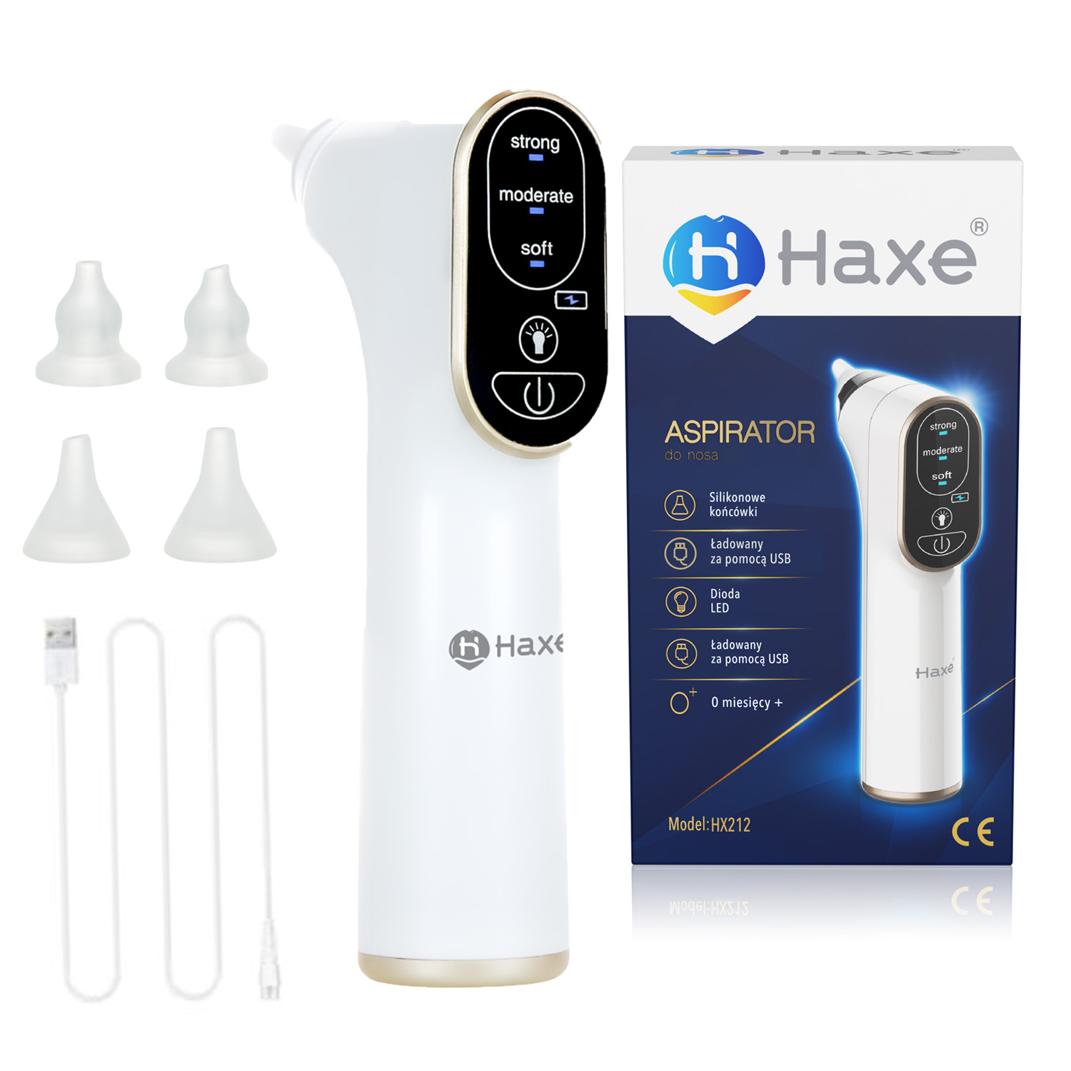 Aspiratorul electric pentru bebeluși este un dispozitiv modern de curățare nazală. Aspiratorul cu trei viteze si lampa LED face ca aspirarea secretiilor sa fie cat mai usoara, atat ziua cat si noaptea. Este un dispozitiv excepțional de silențios și la îndemână, care ajută la curățarea nasului de secreții chiar și la nou-născuți. Toate părțile care intra in contact cu secreția pot fi ușor dezasamblate, spălate și chiar dezinfectate. Aspiratorul HX212 se incarca printr-un cablu USB, iar o incarcare completa dureaza 2 ore de utilizare.