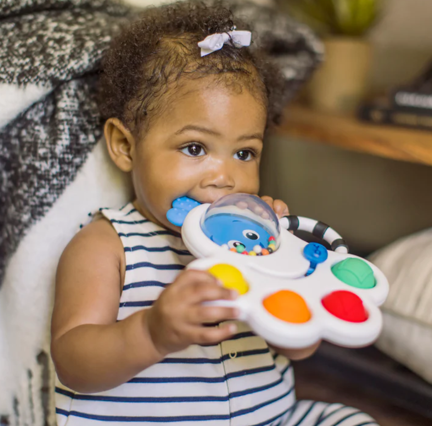 Cu un design 3 in 1, jucaria Opus’s Shape Pops™ de la Baby Einstein este o jucarie zdranganitoare pentru dentitie, senzoriala care cu siguranta va capta atentia micutulu tau. Bilutele moi si vbrante sunt extrem de distractive pentru bebelusi deoarece ofera un sunet bland de fiecare data cand acestea sunt apasate.