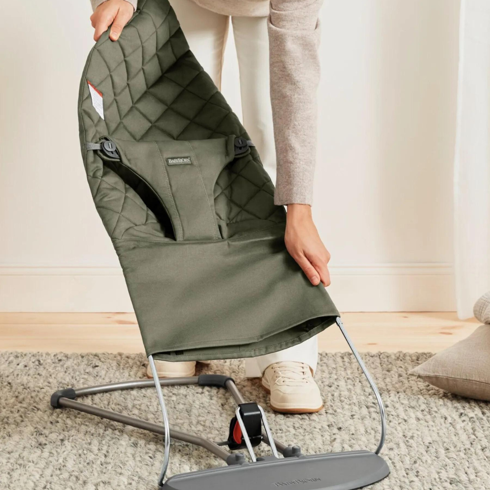 Balansoarul Bliss de la BabyBjorn este un loc confortabil pentru bebelus in care se poate juca sau poate dormi nestingherit in timp ce tu te poti bucura de putin timp liber sau poti finaliza acivitatile casnice. Miscarile de balansare sunt blande si placute si se activeaza cand bebe se misca. Nu necesita baterii – functioneaza pe baza fericirii pure! Joaca in balansoar il ajuta pe cel mic sa isi dezvolte abilitatile motorii si echilibrul. Se poate utiliza de la nastere pana la varsta de 2 ani.