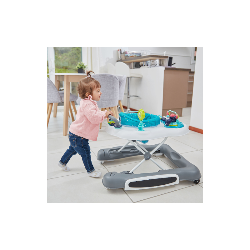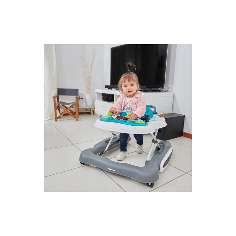 Spatarul scaunului este moale si ofera confort si sprijin copilului Premergatorul Walker 5 in 1 de la Babymoov este un produs excelent pentru a-i oferi copilasului tau o aventura minunata! Acest premergator multifunctional 5 in 1 il va ajuta pe cel mic pe masura ce acesta creste. Cand bebe incepe sa se ridice, poate sta in scaunul confortabil si se poate juca cu jucariile vesele. Pe masura ce bebelusul creste, devine o modalitate sigura de a se misca si de explorare. Premergatorul il va ajuta pe cel mic sa faca primii pasi, conferindu-I siguranta si confort. Este potrivit pentru copiii cu varste cuprinse intre 6 si 24 de luni. Dimensiuni: 70 x 24 x 65 cm (impaturit); 70 x 47 x 65 cm (deschis)