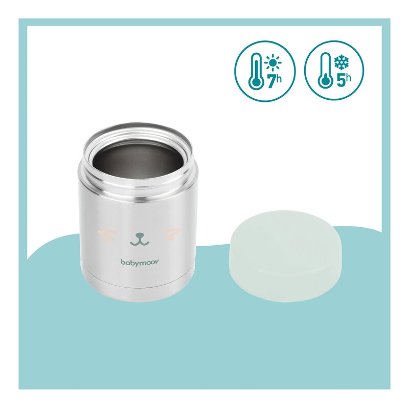 Micutul tau va deveni mai independent, iar luarea mesei sau a gustarilor vor fi mai distractive Mancarea preferata, oriunde si oricand! Recipientul pentru mancare de la Babymoov este confectionat din otel inoxidabil si pastreaza portiile de mancare de dimensiuni mici - calde sau reci. Micutul va fi pregatit pentru mesele luate in deplasare sau calatorii. Se recomanda utilizarea de la 4 luni+