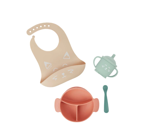 Setul contine 1 bol, 1 cana, 1 lingura si 1 bavetica;