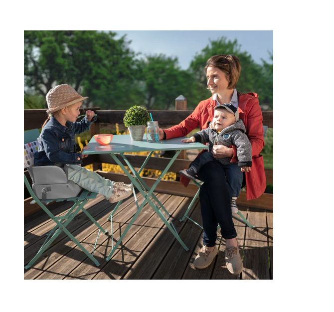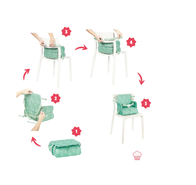 Cu scaunul booster de la Babadulle Nomad copilasul este in siguranta oriunde ati lua masa. Se ataseaza foarte simplu de toate scaunele folosind curelele speciale; una pentru sezut si una pentru spatar.