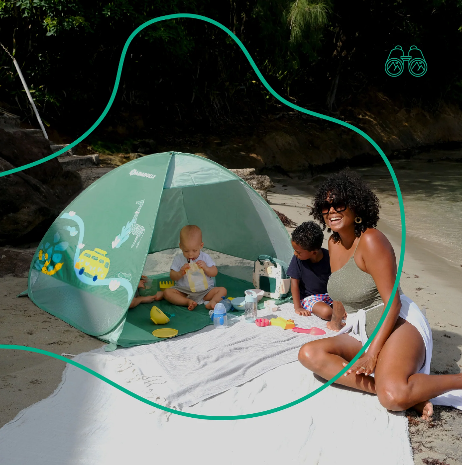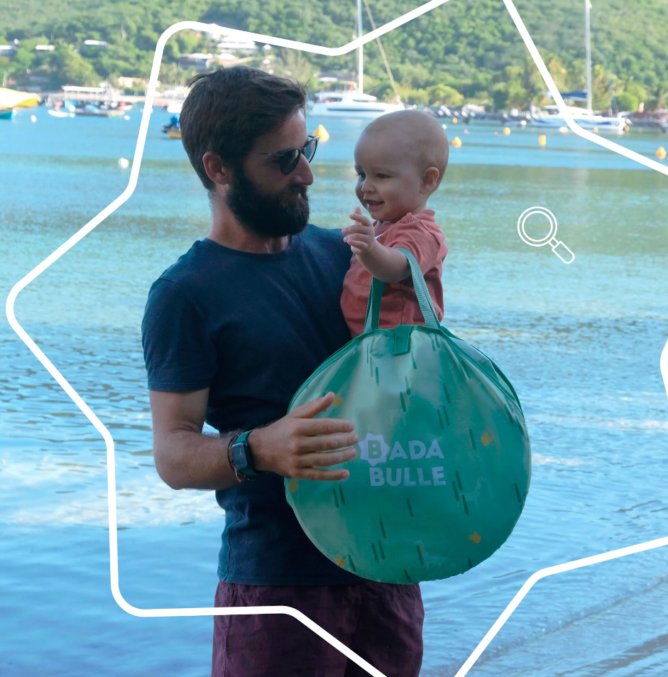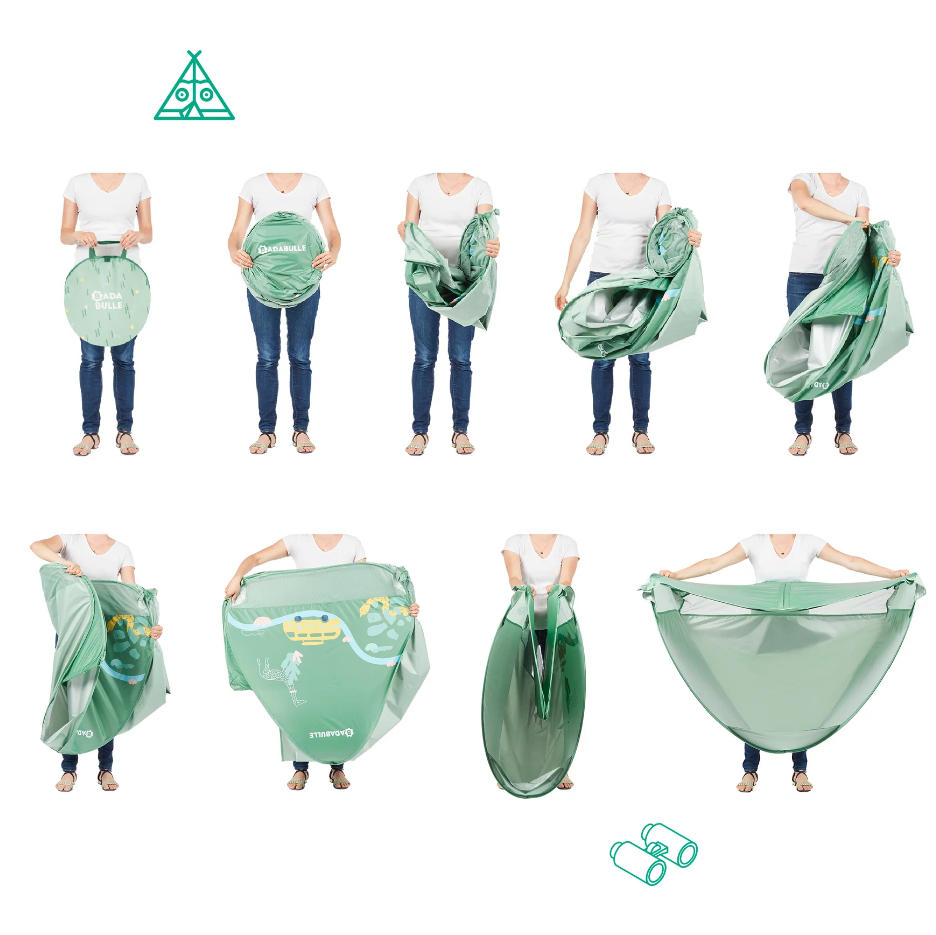 De la inceputurile sale, in urma cu 8 ani, Badabulle si-a urmarit scopul declarat, acela de a face viata tinerilor parinti mai usoara. Badabulle realizeaza produse utile si in aceeasi masura, in tendinta – fiind foarte apreciate de catre parintii din Franta. Stim ca timpul este foarte pretios pentru parinti, de aceea Badabulle si-a propus sa dea parintilor oportunitatea de a petrece mai mult timp alaturi de cei mici. Cortul anti UV de la Badabulle il protejeaza pe cel micut de soare, vant si nisip. Acest cort se pliaza si se deschide in cateva secunde datorita sistemului sau pop-up. Este predispus cu 4 cuie pentru o sustinere perfecta atunci cand este montat. Cortul este un spatiu de joaca portabil sau un spatiu pentru dormit care poate fi transportat usor in orice calatorie alaturi de bebelus. Dimensiuni deschis: 125L x 100l x 85h