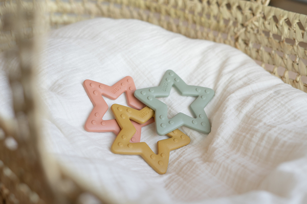 Toate materialele sunt 100% alimentare Micutul tau va adora jucaria de dentitie in forma de steluta de la BIBS pentru ca e perfecta pentru cele mai mici maini. Este ideala pentru mestecat datorita faptului ca are un efect calmant asupra gingiilor. Varsta recomandata: 0 luni +