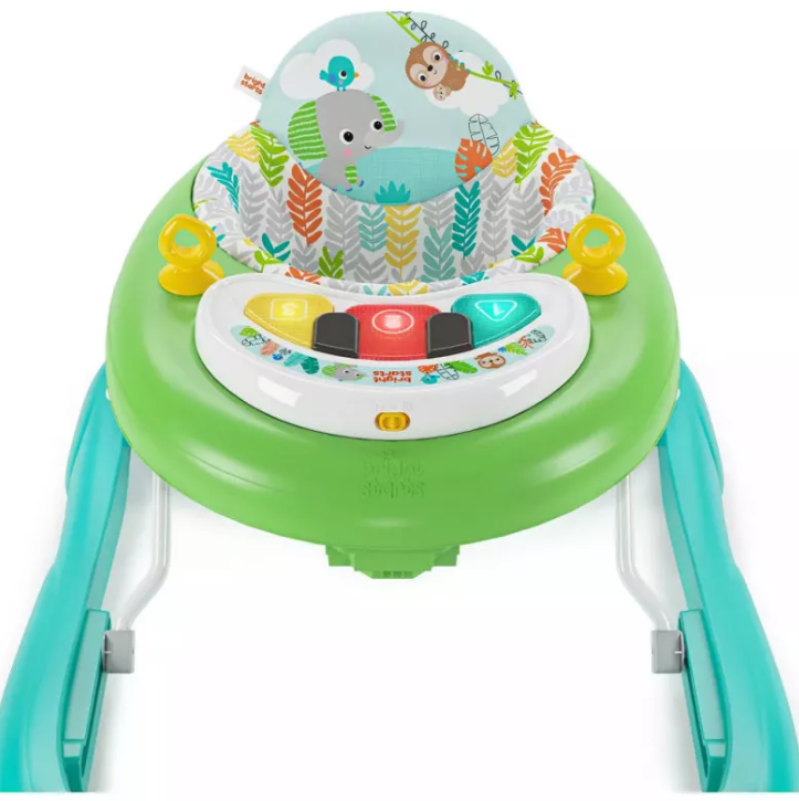 Despre Bright StartsMai multa bucurie in fiecare moment! De la primele cuvinte la primele aniversari, fiecare copil merita sa traiasca intr-o lume a distractiei si veseliei. De aceea, misiunea noastra este sa aducem bucuria mai aproape de micuti. Sa le daruim magia rasului si sa le cream amintiri pentru o viata.Noi vedem lumea intr-un mod diferit, iar universul nostru este construit pe zambete, confetti si joaca! Porneste la plimbare impreuna cu micutul tau si premergatorul 2 in 1 Jungle Vines. Copilasului tau ii va placea sa descopere locuri noi din casa iar datorita pianului muzical premergatorul poate fi considerat si un loc de joaca. Melodiile si luminitele ii vor stimula imaginatia si dezvoltarea functiilor motorii. Dimensiuni: 71,12 x 63,5 x 50,8 cm