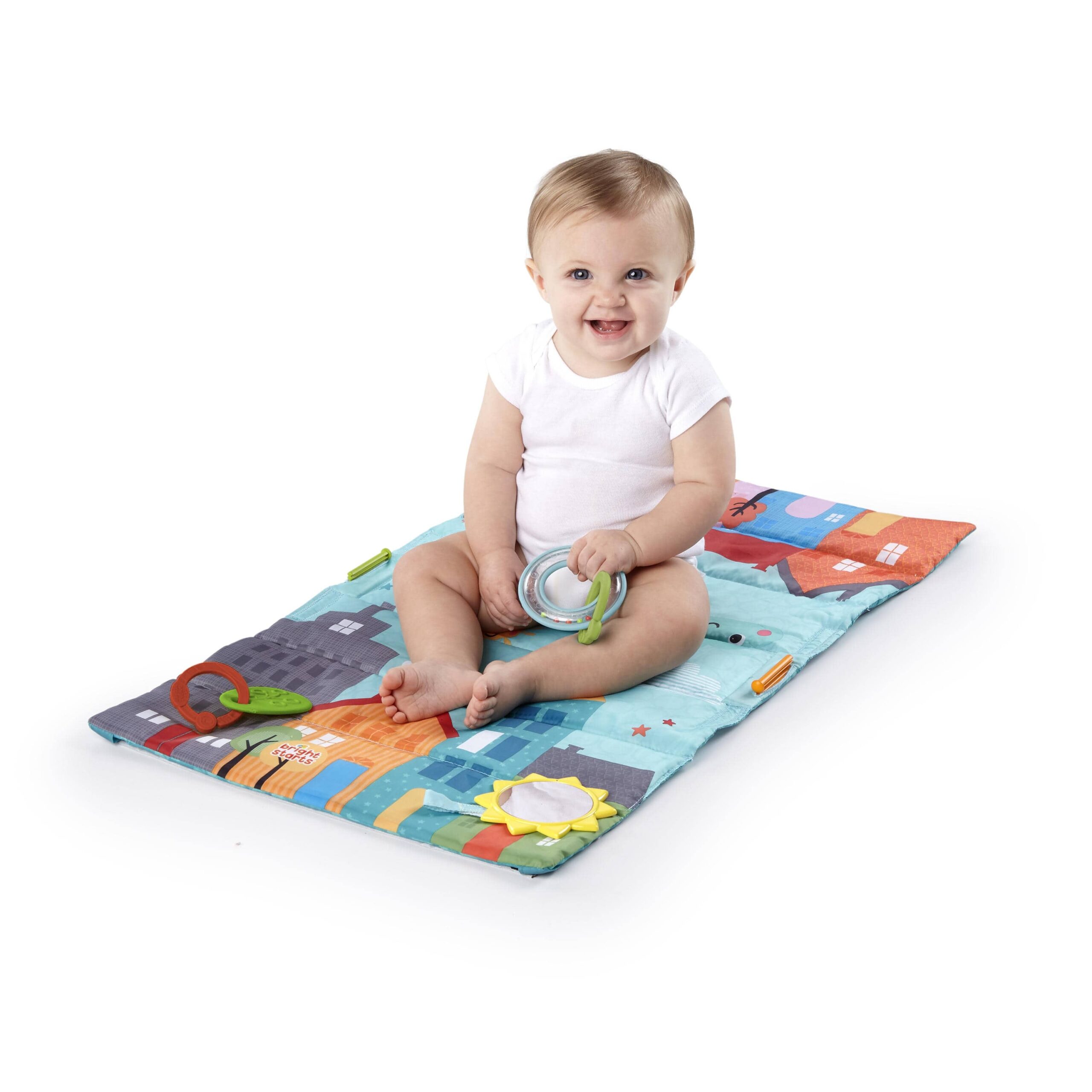 Mai multa bucurie in fiecare moment! De la primele cuvinte la primele aniversari, fiecare copil merita sa traiasca intr-o lume a distractiei si veseliei. De aceea, misiunea noastra este sa aducem bucuria mai aproape de micuti. Sa le daruim magia rasului si sa le cream amintiri pentru o viata. Noi vedem lumea intr-un mod diferit, iar universul nostru este construit pe zambete, confetti si joaca! Ia distractia cu tine oriunde! O zi in deplasare cu bebelusul nu a fost niciodata mai usoara alaturi de salteluta creata pentru parintii mereu in deplasare. Salteluta de activitati se impacheteaza compact si incape in majoritatea gentilor de scutece.