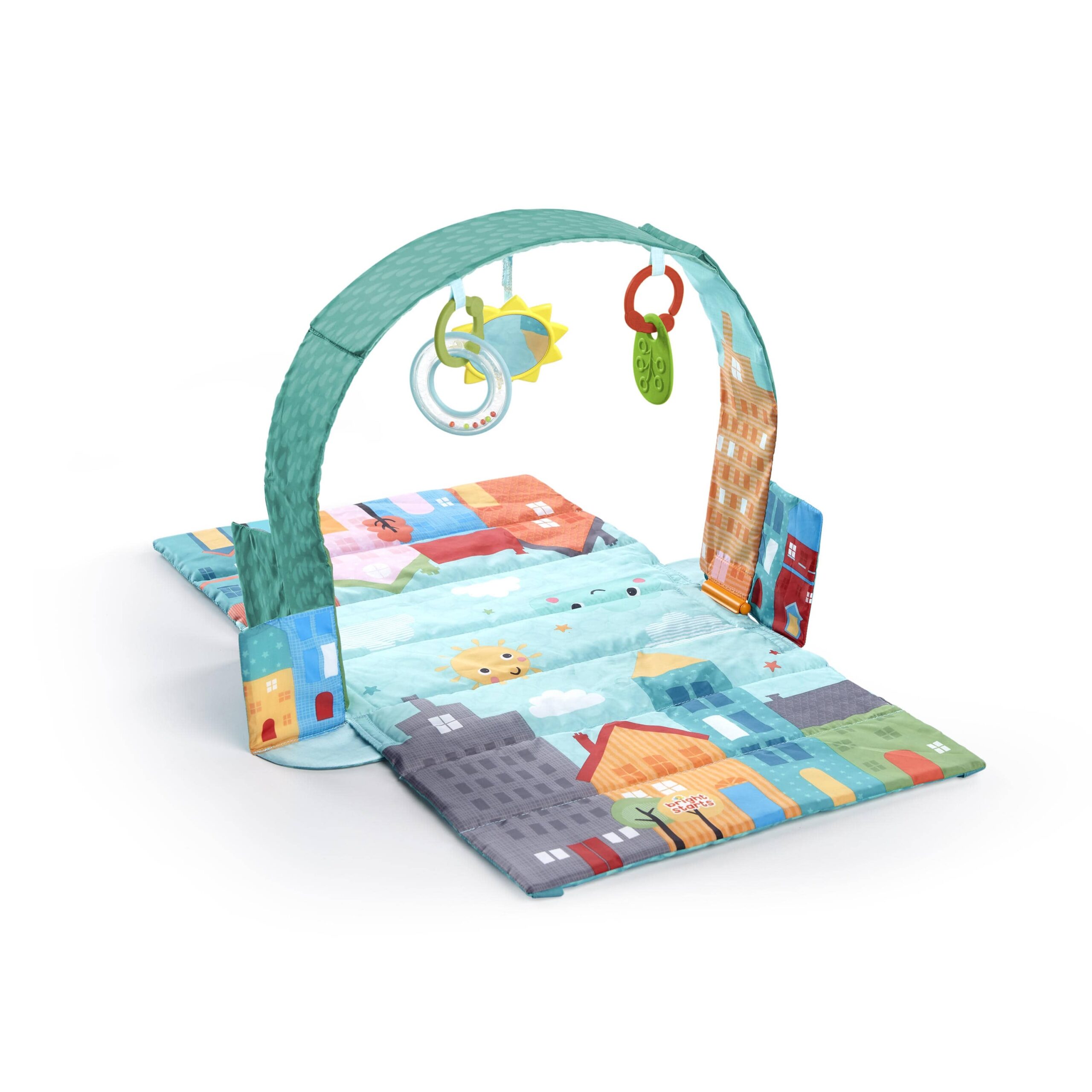 O parte este gata de joaca, chiar si pe burtica, sau orice alt fel de activitate alaturi de jucariile de pe bara. Pe cealalta fata este salteluta perfecta pentru schimbat scutece. Ambele fete sunt impermeabile si facute din materiale care pot fi usor curatate. Varsta minima recomandata: 0 luni