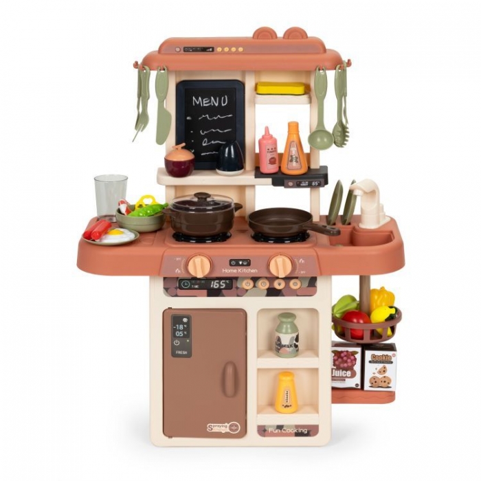 Setul include 42 de elemente, bucataria are efecte sonore si luminoase, un generator de abur si o chiuveta cu dozator de apa. Bucataria, datorita functionalitatii sale, va atrage multe ore de distractie si va deveni rapid jucaria ta preferata.