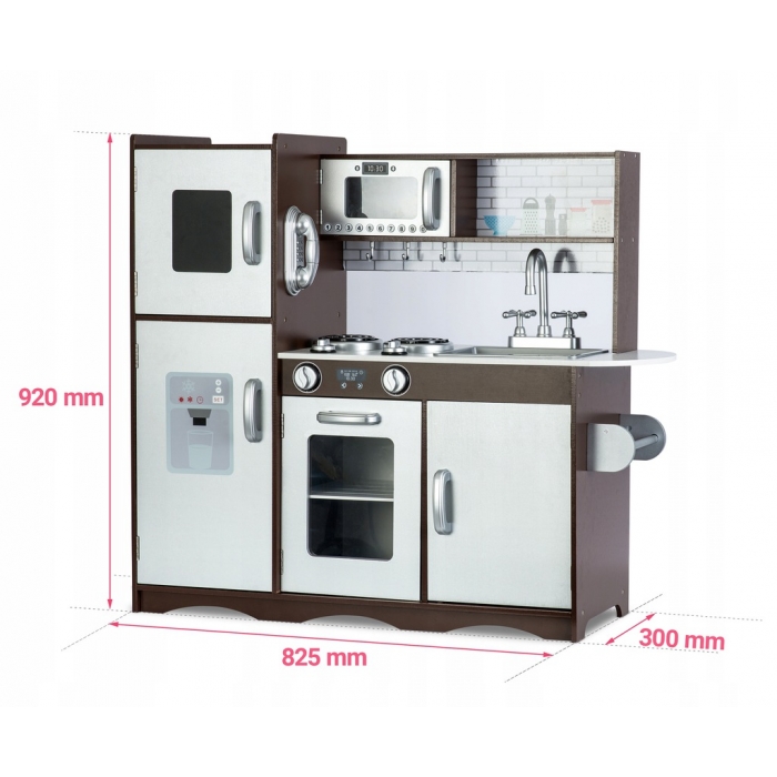 O structura solida din lemn il stil retro va face din bucatarie un decor al oricarei incaperi. Aceasta bucatarie este visul fiecarui mic bucatar. Deschiderea usilor, butoanele mobile, telefonul elegant vor oferi distractie pentru multe ore.