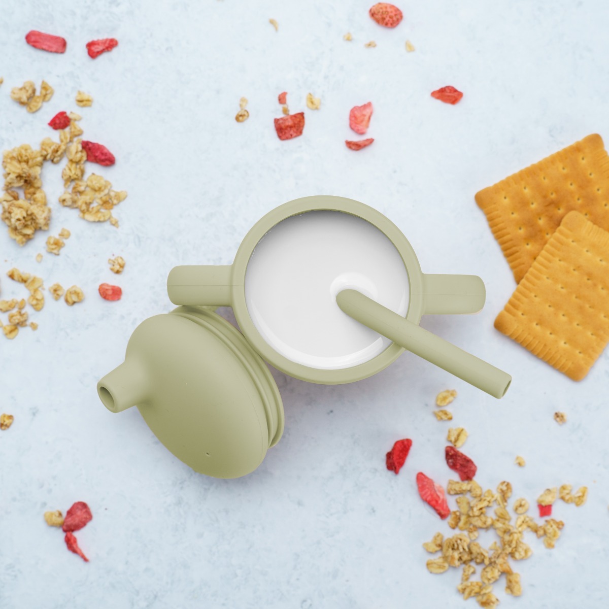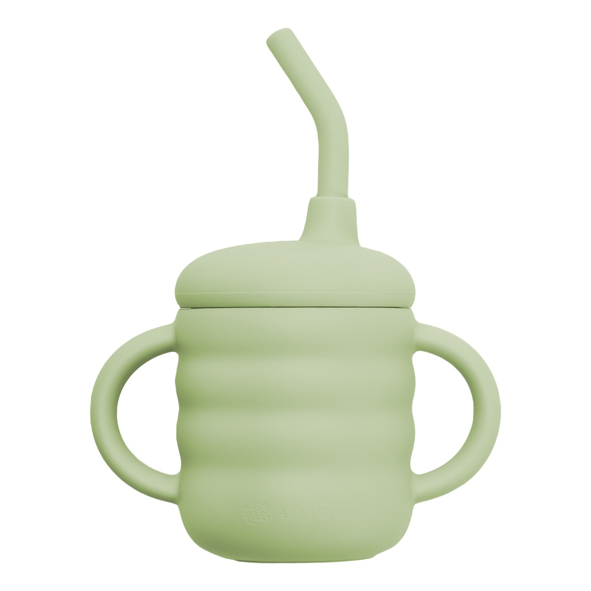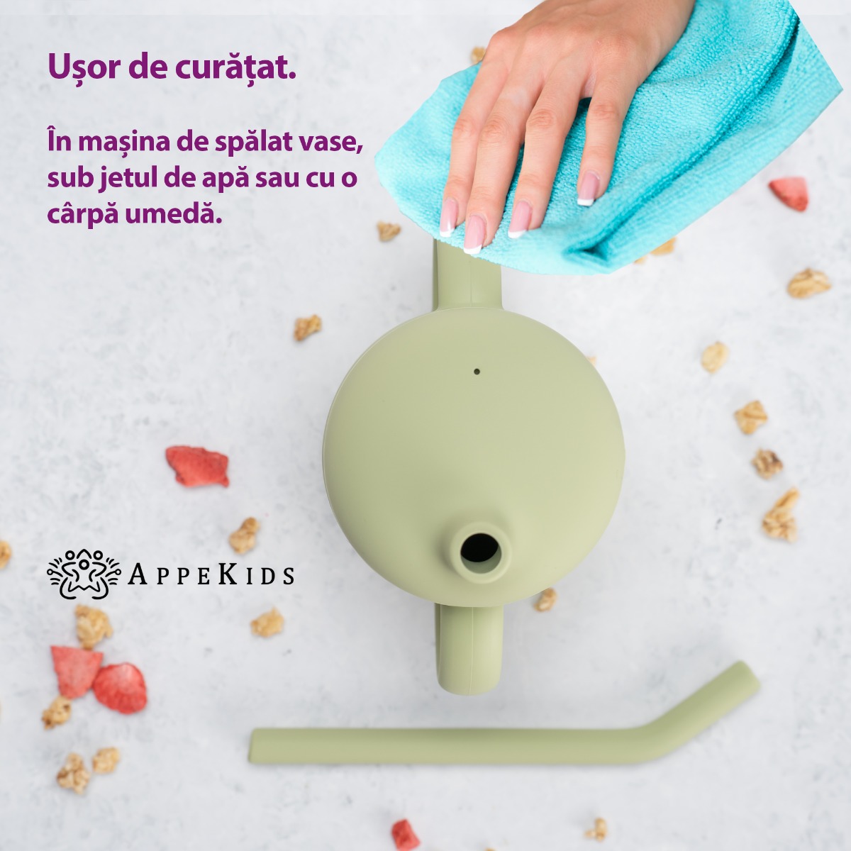 <p><strong>Cana din silicon cu pai, AppeKids - Raw Green</strong></p>