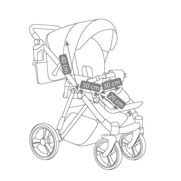 Cadrul caruciorului (pliat): 83 x 36 cm (L x H);