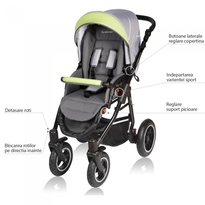 - varianta sport are inclusa o husa de picioare care in perioadele reci se ataseaza cu ajutorul capselor protejand foarte bine copilul