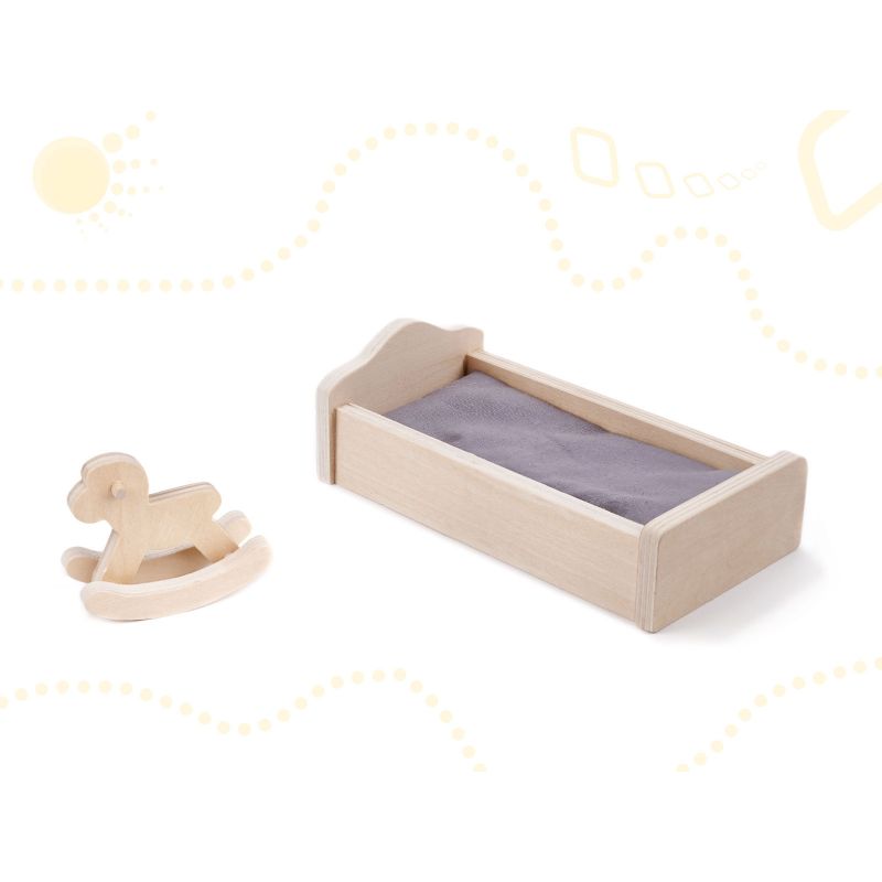 Un pat din lemn cu o saltea moale care va face ca fiecare papusa sa se trezeasca reimprospatata si pregatita pentru joaca vesela.