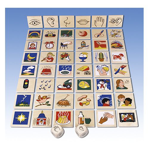 Jocul include: 42 carduri de lemn (64 x 64 x 6.5 mm), 6 carduri de lemn cu simbolurile simturilor 2 zaruri cu simboluri, instructiuni