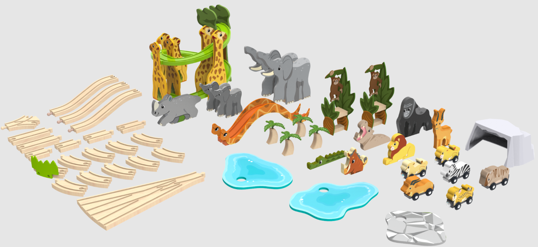 Specificatii: - 6 vehicule animale cu magneti; 7 animale unice prin jungla;