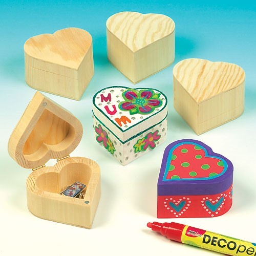 Cutiuta din lemn inimioara - Baker Ross Decoreaza cu dragoste 4 cutii din lemn de calitate in forma de inimioara si capac rabatabil magnetic. Le poti decora folosind carioci,creioane colorate, tempera, sclipici, etc Dupa ce ai finalizat de decorat le poti oferi cadou persoanelor dragi.