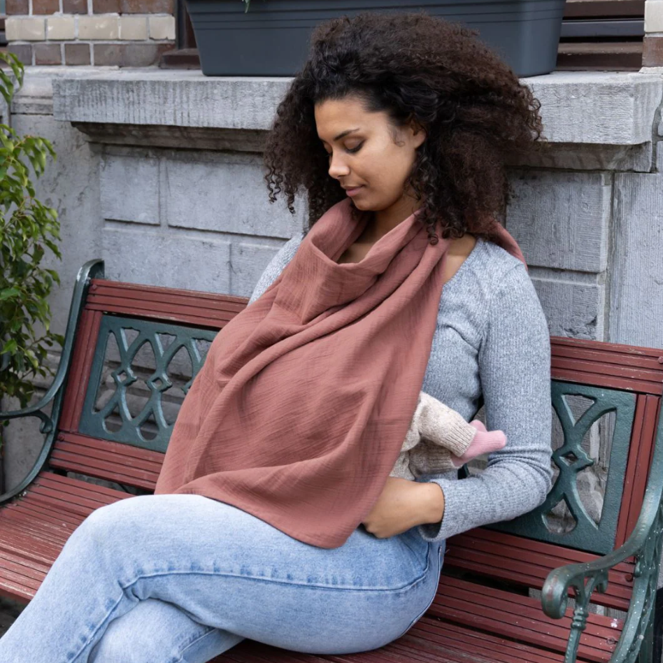 Aceasta esarfa este ideala pentru alaptarea bebelusului oriunde si oricand, in intimitate deplina