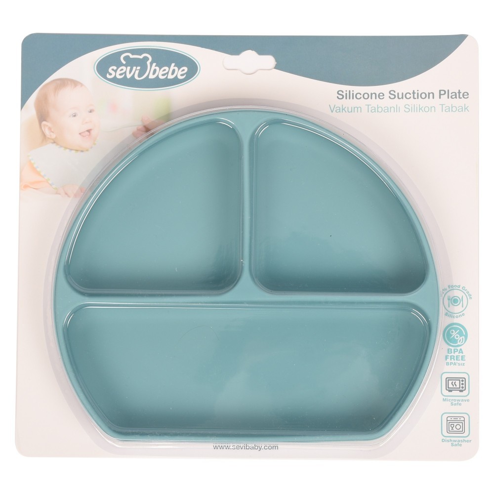 Farfurie compartimentata din silicon alimentar cu ventuza pentru fixare.