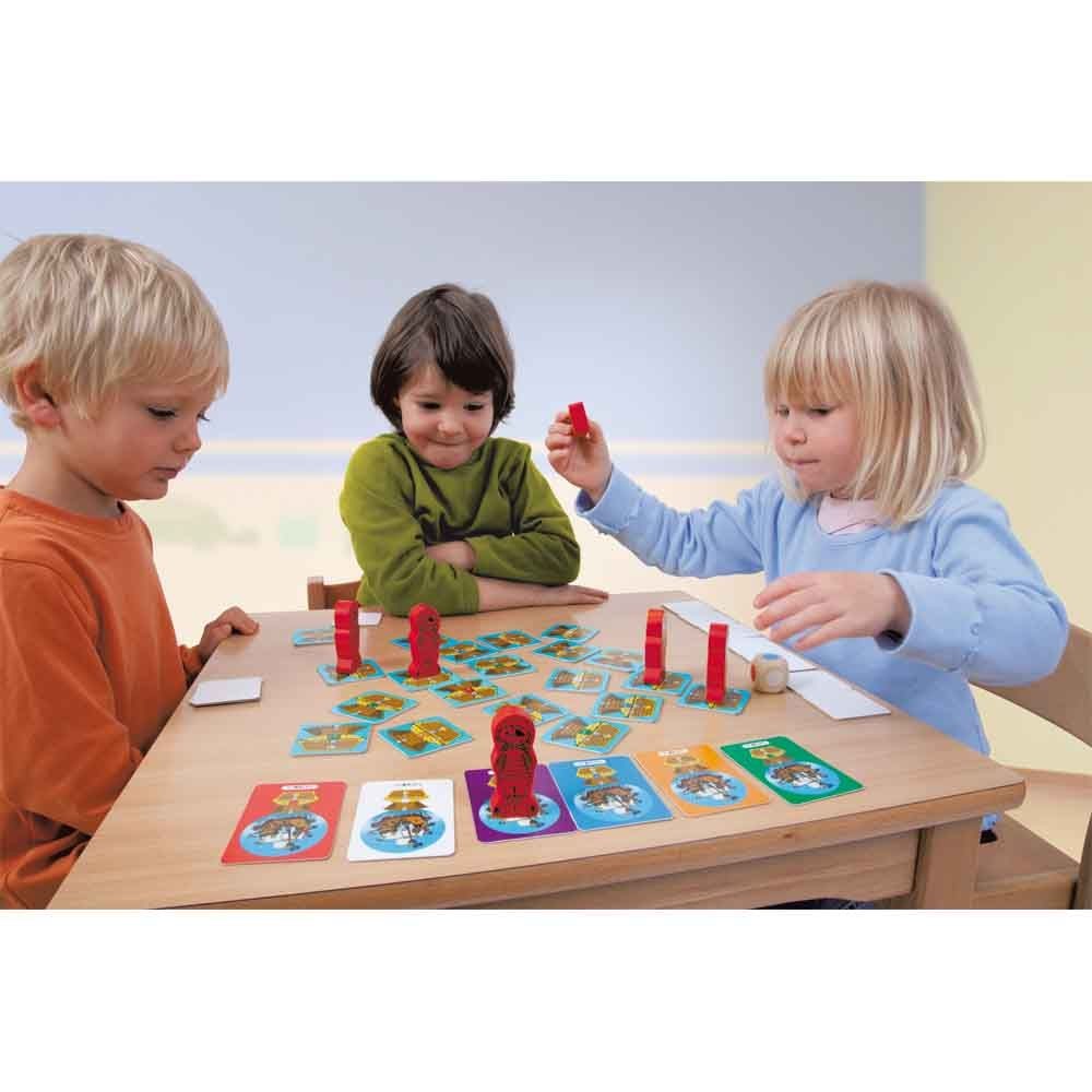 Jocul contine: 6 figurine pirati din lemn, 30 de carduri cufar cu comoara, 6 carduri de culoare, 1 zar din lemn colorat. Joc pentru 2-6 jucatori. Jocul dezvolta spiritul de competitie, comunicarea, socializarea, memoria si ajuta la recunoastrea culorilor, invatarea numararii, coordonarea ochi-mana. Dimensiuni cutie: 225 * 225 * 50 mm. Instructiuni: joc de memorie, bazat pe o vanatoare de comori antrenanta, jucatorii piratul care sta pe cardul cufar de comori avand aceeasi culoare ca cea aratat de zar. Daca jucatorul gaseste cardul colet, il colectioneaza. Castiga jucatorul cu cele mai multe carduri colectionate.