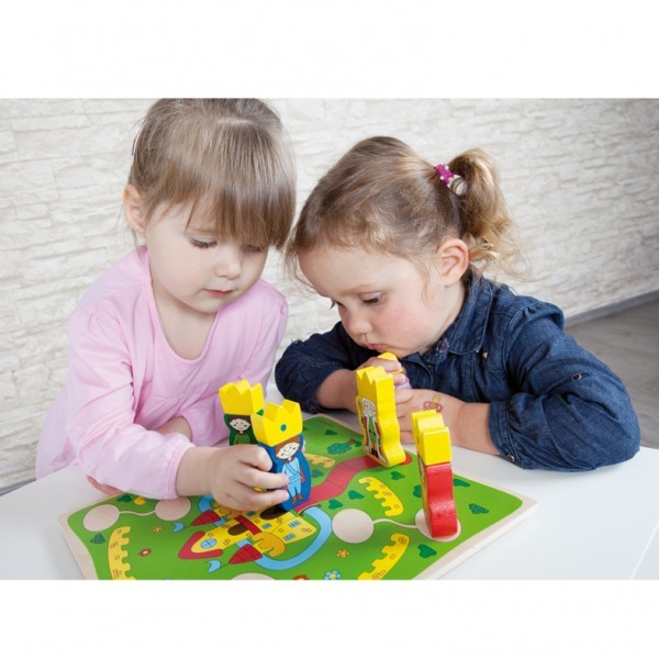 Setul include: 2 printi, 2 printese, 1 rege, 4 coroane din lemn, 1 zar cu culori, 1 zar cu simboluri, instrucțiuni în limba engleză. Dimensiuni: tabla de joc din lemn 290 x 290 x 8 mm, Jocul poate fi jucat de 1-4 jucători. Jocul dezvolta spiritul de competitie, comunicarea, socializarea si ajuta la dezvoltarea coordonarii ochi-mana, a spiritului de observatie si asociere, a miscarilor fine, solicita copiii sa coopereze unii cu altii.