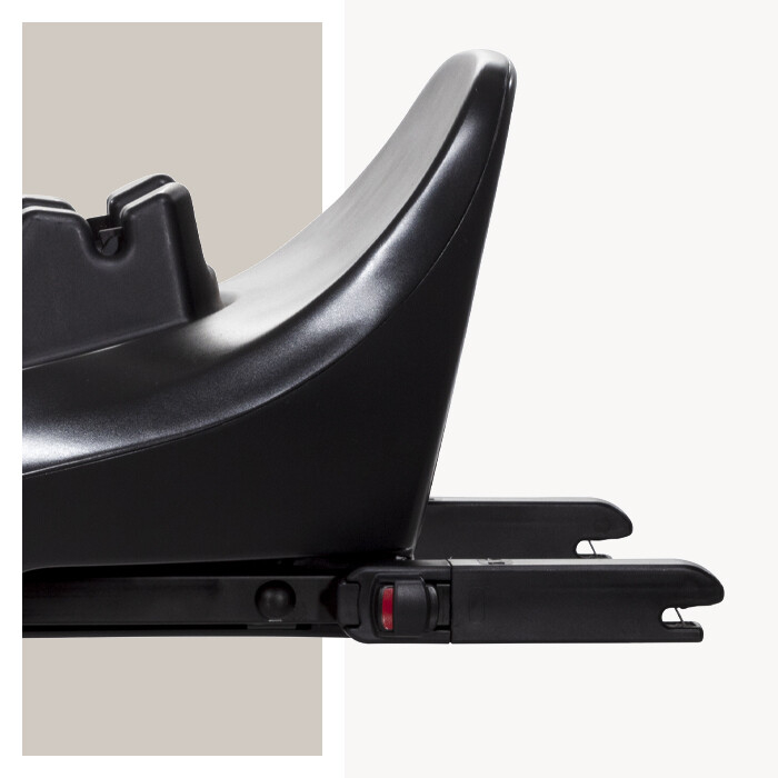 Conectorii ISOFIX fixeaza baza de vehicul, in timp ce piciorul de sprijin reduce rotatia in cazul unui impact.