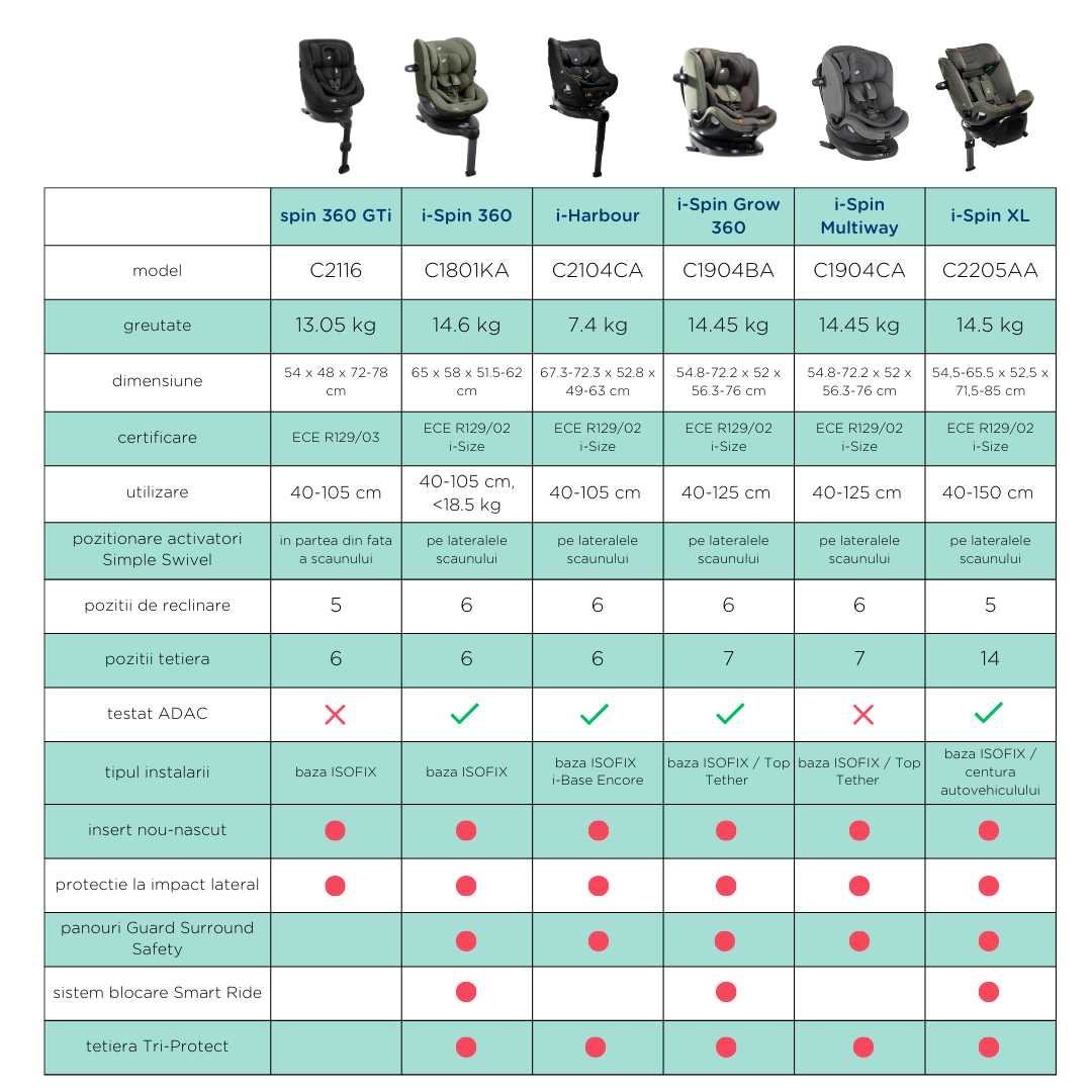 Scaunul i-Spin se inscrie printre produsele 'best sellers' din cadrul brandului Joie datorita calificativelor excelente in cadrul testarilor de siguranta dar si a confortului pe care il ofera atat pentru micutii calatori cat si pentru parinti.