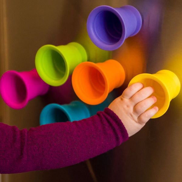 Fiecare dintre aceste sase cupe colorate, squishy, are o ventuza in partea de jos.