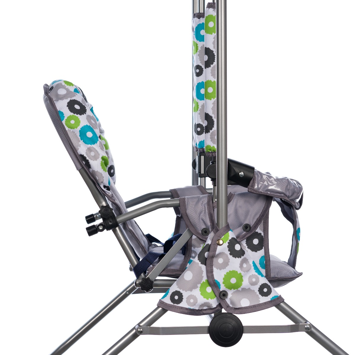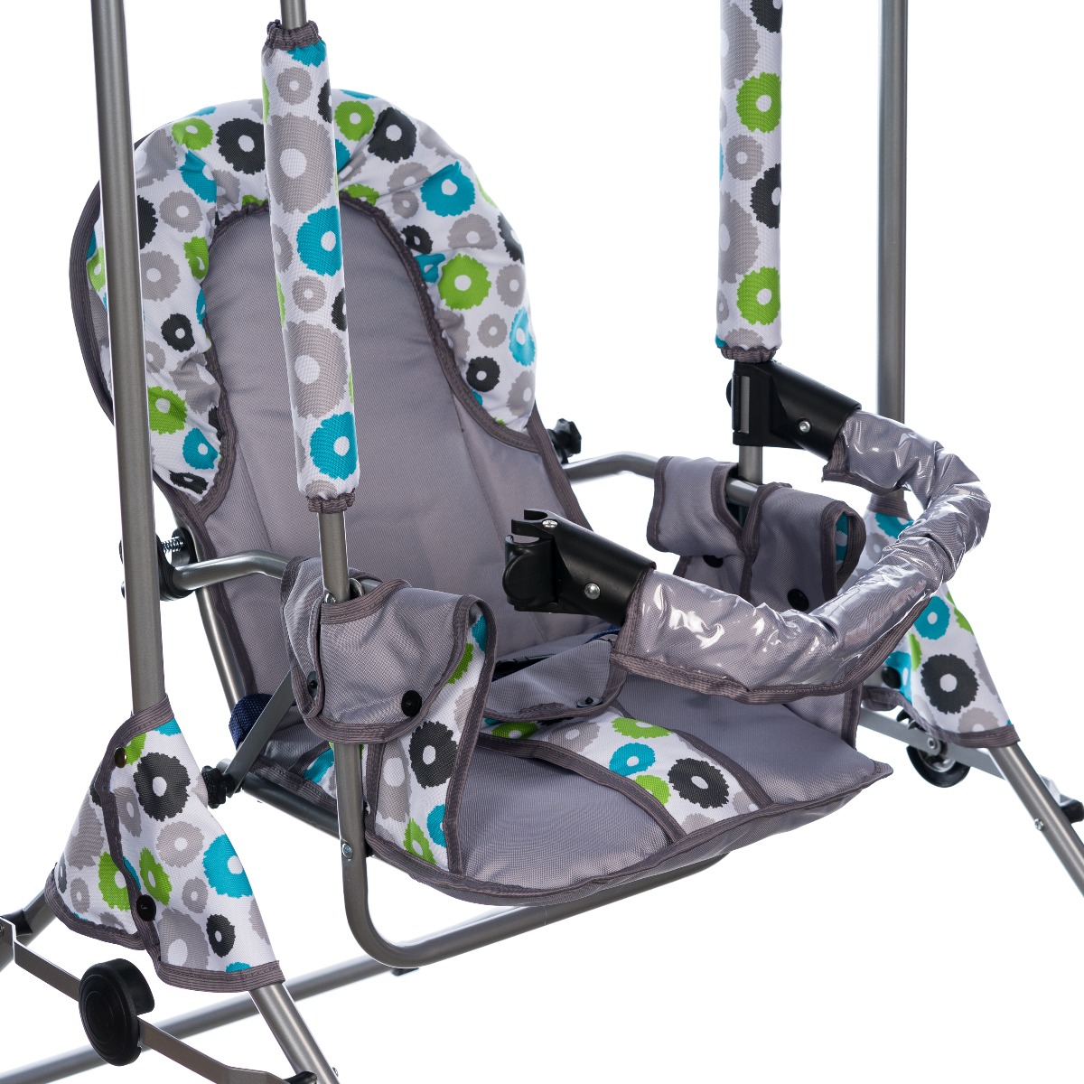 <p>Dimensiuni Pliat : 130x72x20 cm</p> Leagan pentru copii, AppeKids, cu spatar reglabil si bara detasabila, Grey Flowers AppeKids - Leagan pentru copii cu spatar reglabil si bara detasabila
