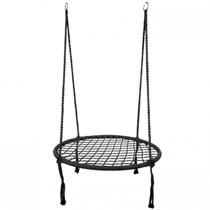 Fotoliul leaganului este suspendat de o franghie invelita in bumbac de 100cm si capse metalice robuste.