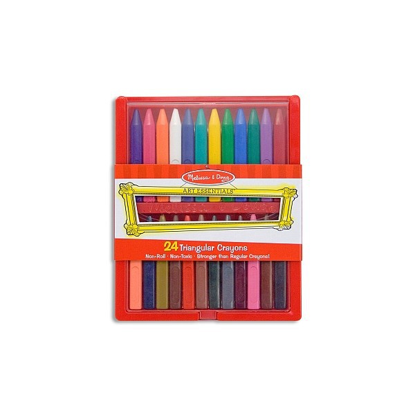 Set de 24 creioane colorate triunghiulare din plastic (nu din ceara) cu durabilitate foarte buna, nontoxice. Design special antialunecare si cutie de plastic cu capac. Forma triunghiulara ajuta la dezvoltarea unei deprinderi corecte de a tine uneltele de scris inca din primii ani. Dimensiuni cutie: 19 x 16 cm.