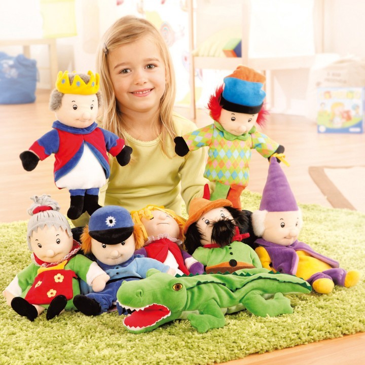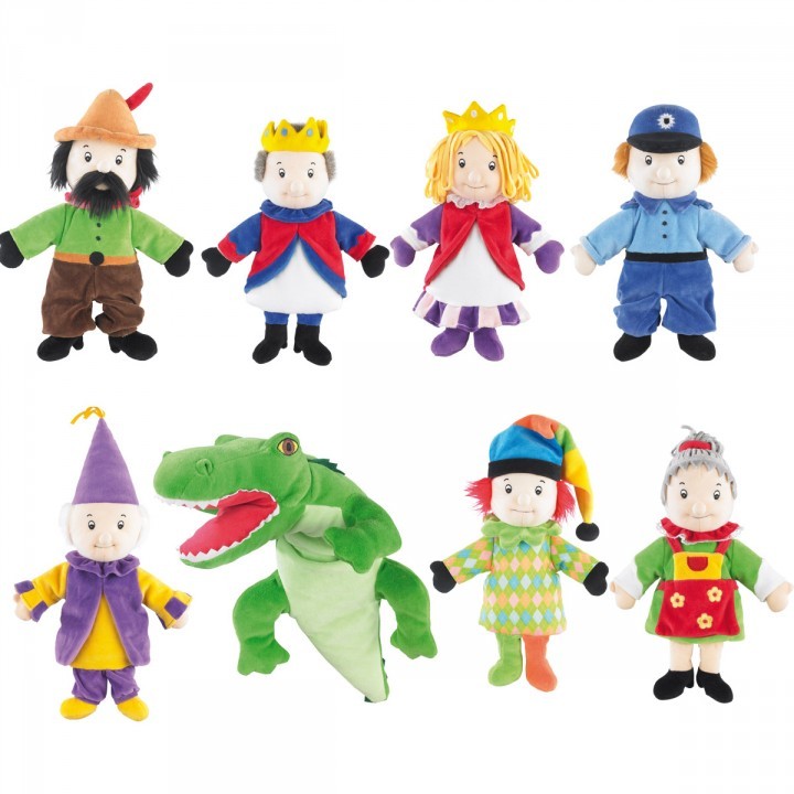Papusi de mana din material textil de calitate excelenta, utile pentru jocuri de rol si montarea pieselor de teatru de papusi. Dimensiuni aproximative 260 * 320 mm, crocodilul are 410 * 230 mm.