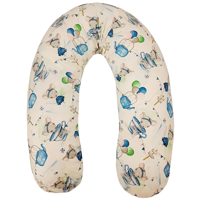 <p>• Lungime: 180 cm</p> Perna pentru gravida, Fibre din silicon, 180 cm, Eko - Mouse Perna pentru gravida cu husa din bumbac si umplutura din fibre de silicon, EKO, 180cm