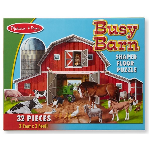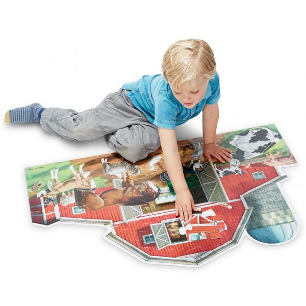 Puzzle de podea Ferma cu animale Puzzle de podea cu 32 de piese, usor de asamblat, in forma de ferma. Copiii vor fi incantati sa descopere diverse animale si detalii interesante si apoi sa "construiasca" o poveste pe baza acestui puzzle. Piesele sunt mari si rezistente pentru a putea fi manevrate si asezate repede de catre copii. Suprafata sa este usor de curatat si astfel se poate pastra intotdeauna ca nou. Dimensiuni asamblat: 91 x 61 cm. Puzzleurile dezvolta abilitatile de asociere si potrivire, spiritul de observatie, coordonarea ochi-mana, perspicacitatea, rabdarea si capacitatea de a finaliza un proiect. Material: carton.