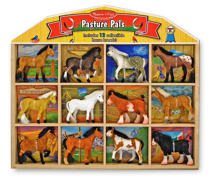 Acesti 12 caluti ce au o textura catifelata si te ajuta sa inveti mai repede despre rasele de cai. Cutia din lemn cuprinde 12 cai diferiti cu legenda de identificare. Un joc grozav care iti stimuleaza imaginatia. Dimensiuni: 35.6 x 33 x 5.1cm