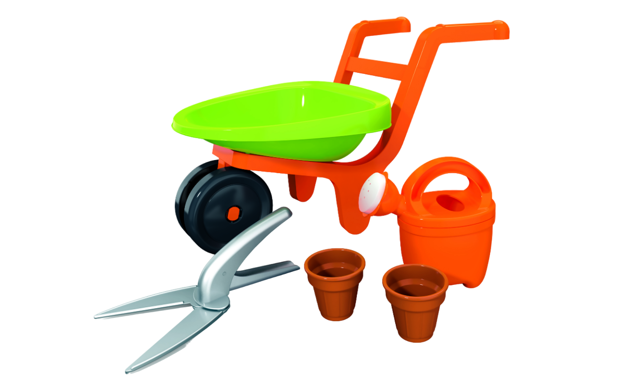- Setul contine: roaba, foarfeca de gradinarit, stropitoare si 2 ghivece