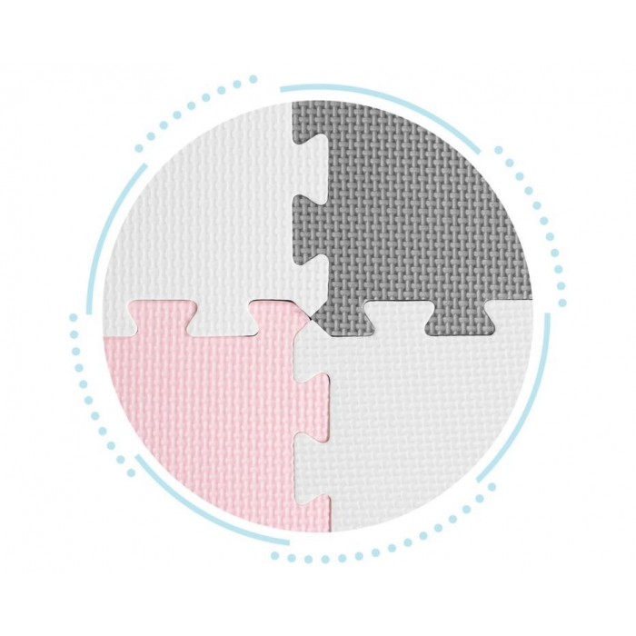 O salteluta din spuma moale EVA este perfecta pentru copiii mici care invata sa mearga. O salteluta din spuma de 0.9 cm grosime realizata din puzzle-uri cu imagini cu animale va oferi izolare de la sol si va actiona, de asemenea, ca o piscina uscata care poate fi umpluta cu bile din plastic sau alte jucarii. Setul este format din 25 piese de puzzle-uri colorate care se conecteaza intre ele si pot forma chiar si un perete.