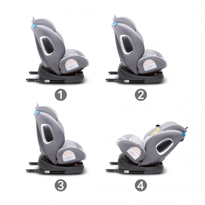 - Reglarea scaunului pentru o potrivire mai buna si un confort mai bun al calatoriei. Reglarea inclinarii in 4 trepte a scaunului (max. 165 de grade) garanteaza o pozitie confortabila si cea mai sigura in timpul calatoriei.