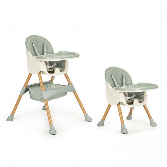 Scaunul este dotat cu un suport pentru picioare confortabil. Husa scaunului poate fi indepartata si spalata cu usurinta daca este necesar, la 30 de grade. Produsul are picioare speciale antiderapante. Marginile ridicate ale tavii asigura, ca nimic nu se va varsa pe podea.