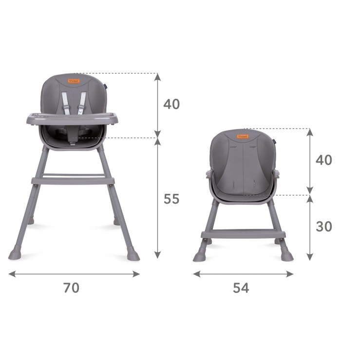 Scaunul multifunctional EATAN 4 in 1 creste odata cu copilul tau. Scaunul poate fi folosit pana la varsta de 6 ani.