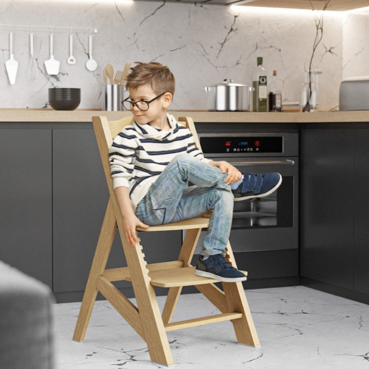 Scaun masa copii pliabil din lemn 4 in 1 Morsel Natur, include husa perne moi,centura siguranta, tavita plastic detasabila, pentru 6 luni-12 ani, EN 14988:2017+A1:2020