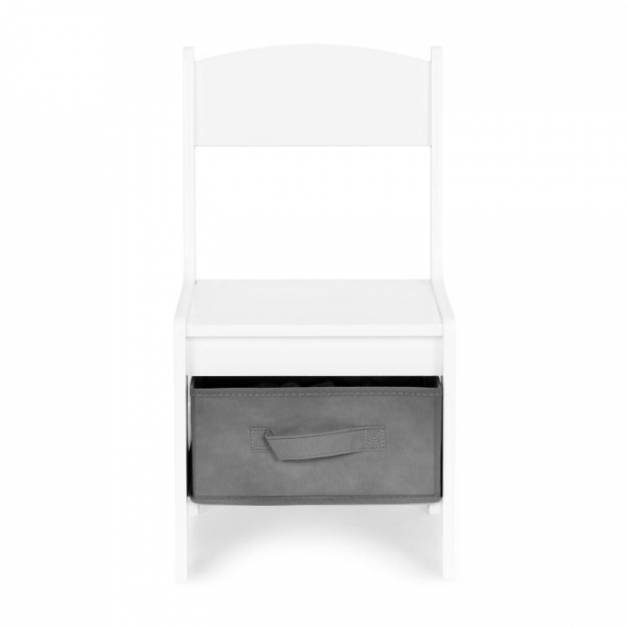 Sub sezutul scaunelor sunt sertare incapatoare, din material textil, perfecte pentru depozitarea jucariilor. Setul este perfect pentru camerele copiilor, salile de joaca sau salile de asteptare.