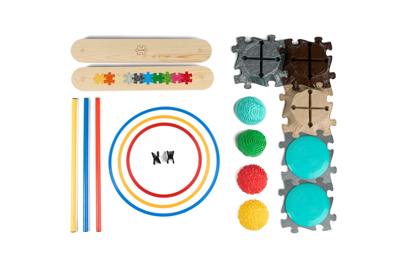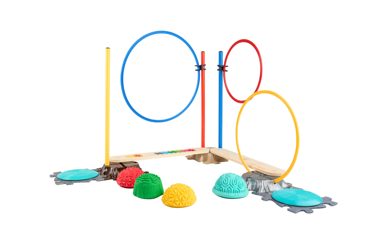 Specificatii: - Contine: 1x butuc maro 1x butuc bej 1x butuc gri 1x cerc roșu (ø 40 cm) 1x cerc galben (ø 50 cm) 1x cerc albastru (ø 60 cm) 3x bete de 70 cm (albastru, galben, roșu) 2x cleme UNI 2x piatra de echilibrare - diamant, roșu și galben 1x piatra de echilibrare - broasca testoasa, turcoaz 1x piatra de echilibrare - ciot, verde 1x pasarela cu puzzle-uri MUFFIK Nano (10 piese) - 70 x 11,5 cm 1x pasarela dreapta (70 x 11,5 cm) 1x set rotana (turcoaz) - Varsta: + 3 ani - Utilizati numai sub supravegherea unui adult. - Material: LEMN, PVC, PP, ABS - Nu expuneti la temperaturi extrem de reci/calde.