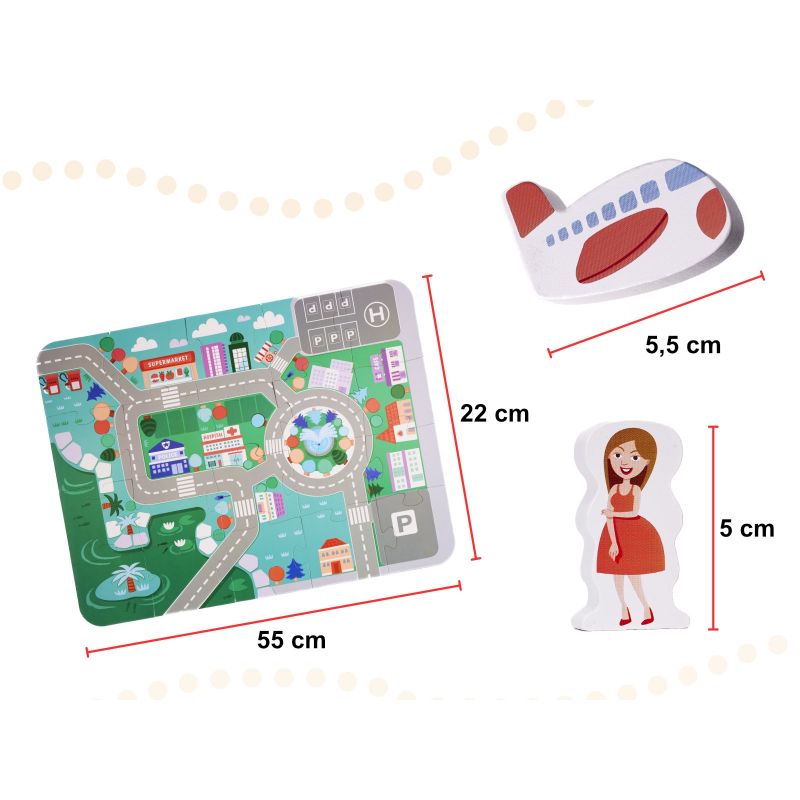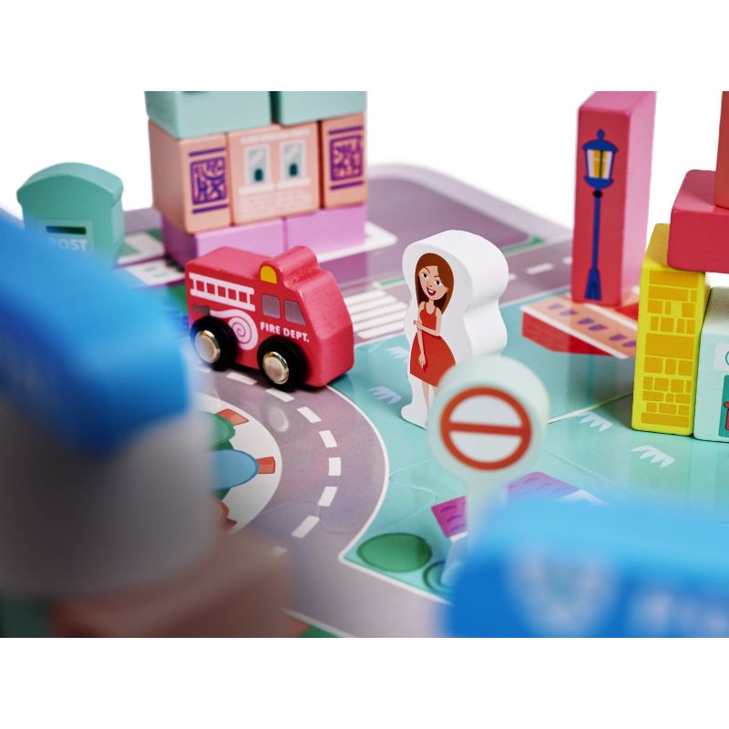 Orasul nu poate rata cele mai importante - strazi si masini . Setul include un puzzle care, atunci cand este aranjat, va crea un circuit de strazi. Ele vor fi un complement perfect pentru intreg. Un set de blocuri multicolore este o propunere pentru distractie creativa si in dezvoltare.