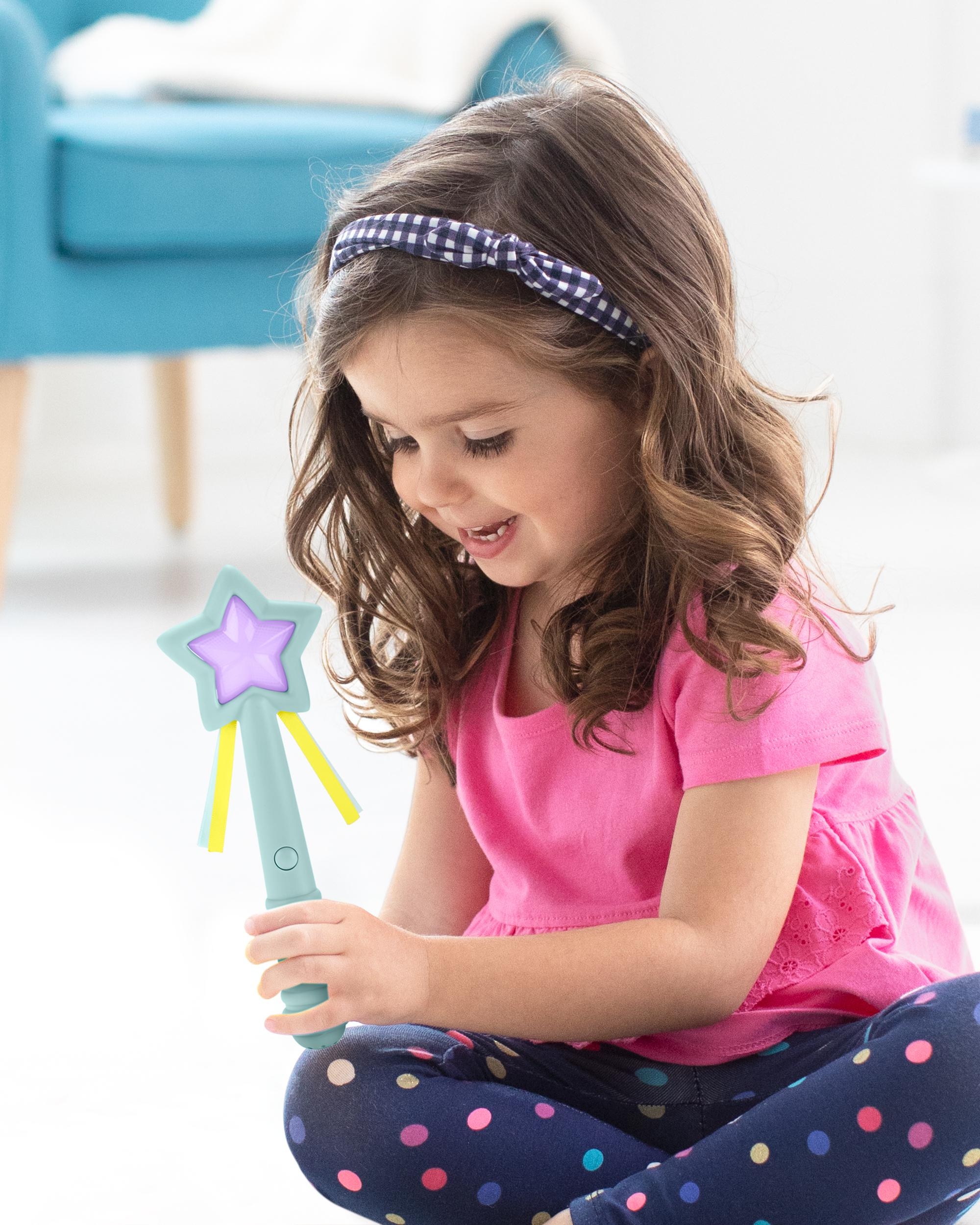 Pregatiti-va de noi aventuri distractive cu bagheta magica. Special conceputa pentru a stimula imaginatia si creativitatea, contine o stea luminoasa care va fermeca copilasii. Sunetele incantatoare sunt emise la o simpla apasare de buton.
