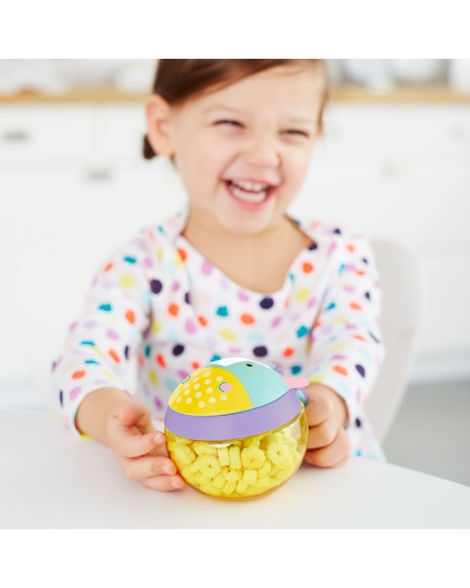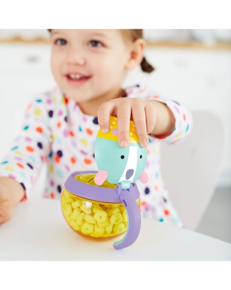 Perfecta pentru gustari, aceasta cana adorabila incurajeaza gustarile independente fara a crea dezordine. Manerul de prindere este realizat astfel incat celor mici sa le fie usor de prins cu mainile lor mici, iar capacul superior de prindere asigura gustari proaspete de fiecare data. Deschiderea flexibila din interior pastreaza gustarile in interior - chiar daca recipientul este inclinat. Atunci cand ai doua capace, faci mai putina mizerie iar geanta mamicii ramane curata si fara firimituri.