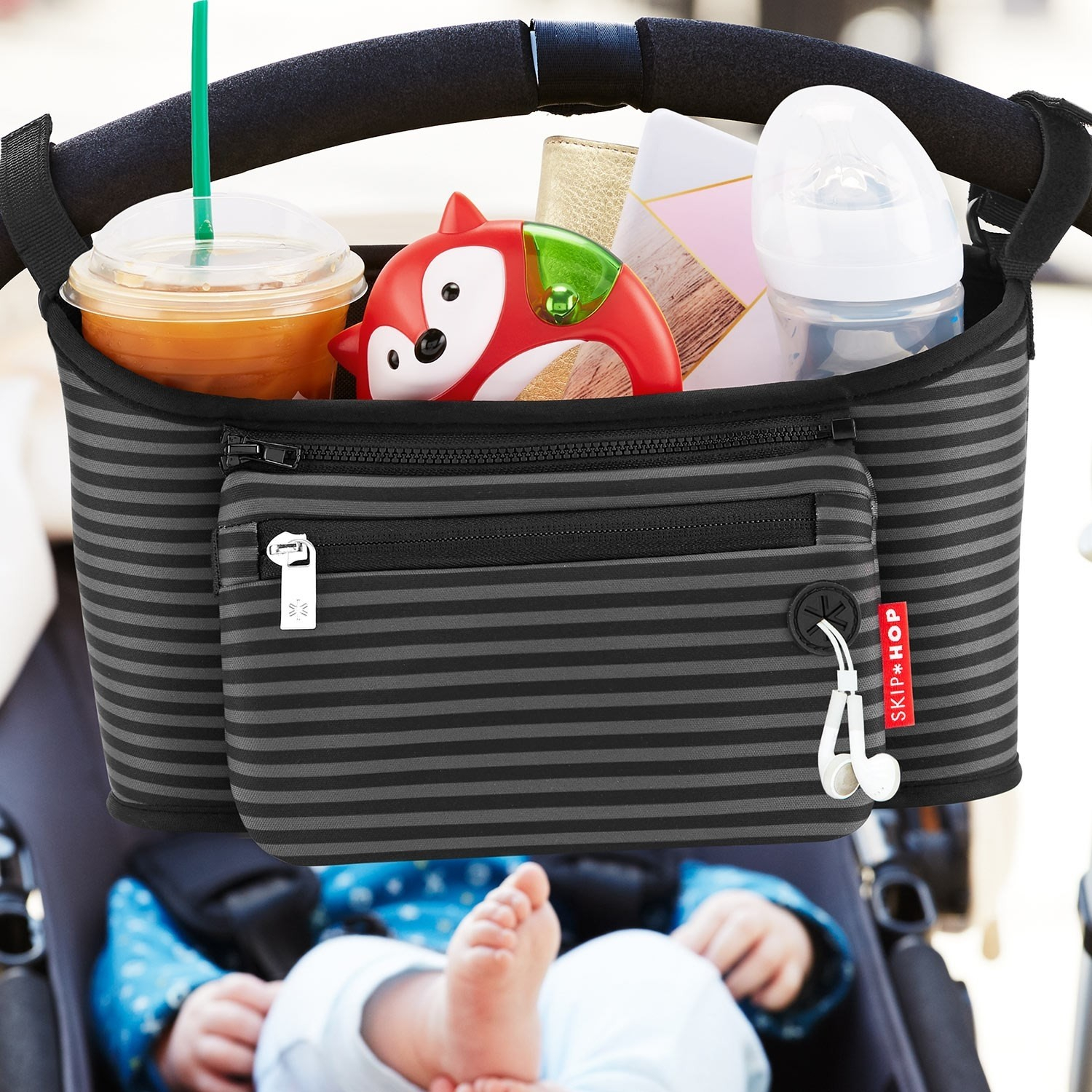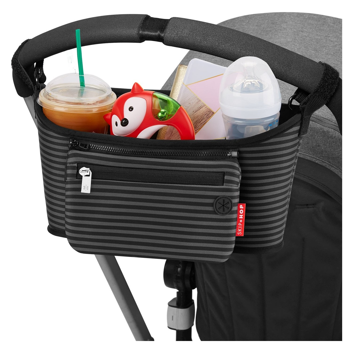 Acest organizator izolat termic pentru bauturi si pahare de ceai se intinde pentru a lasa loc sticlelor si canilor de cafea in siguranta, in acelasi timp oferind acces usor la elementele cele mai importante. Se potriveste pe majoritatea barilor si manerelor carucioarelor, aceasta geanta organizatoare include o bratara detasabila pentru a fi purtata in mana si un port pentru casti ideal pentru apelurile hands-free.