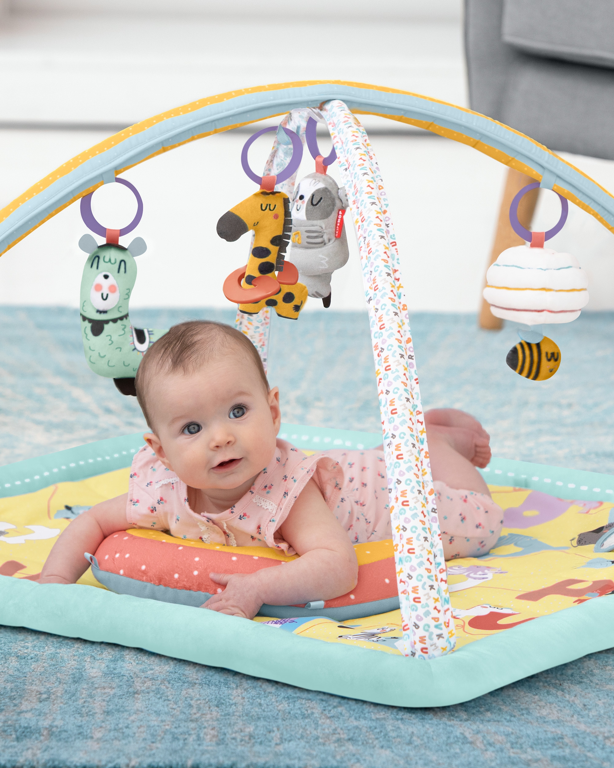 Cu o familie prietenoasa de animale vesele si cu multe lucruri de vazut, de auzit, de simtit si de atins – aceasta salteluta creste impreuna cu bebelusul, incurajandu-l sa descopere lucruri noi si interesante.